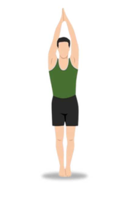 3. Bring your hands to prayer position at your chest or raise them overhead.