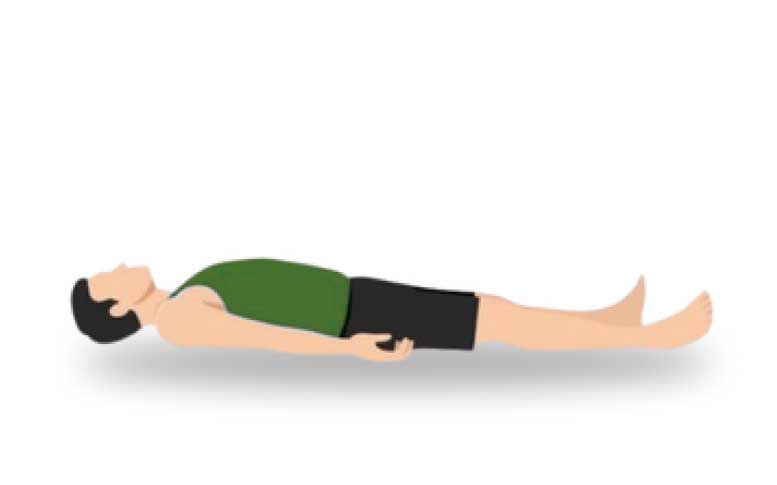 1. Lie on your back with your legs extended and arms by your sides, palms facing up.